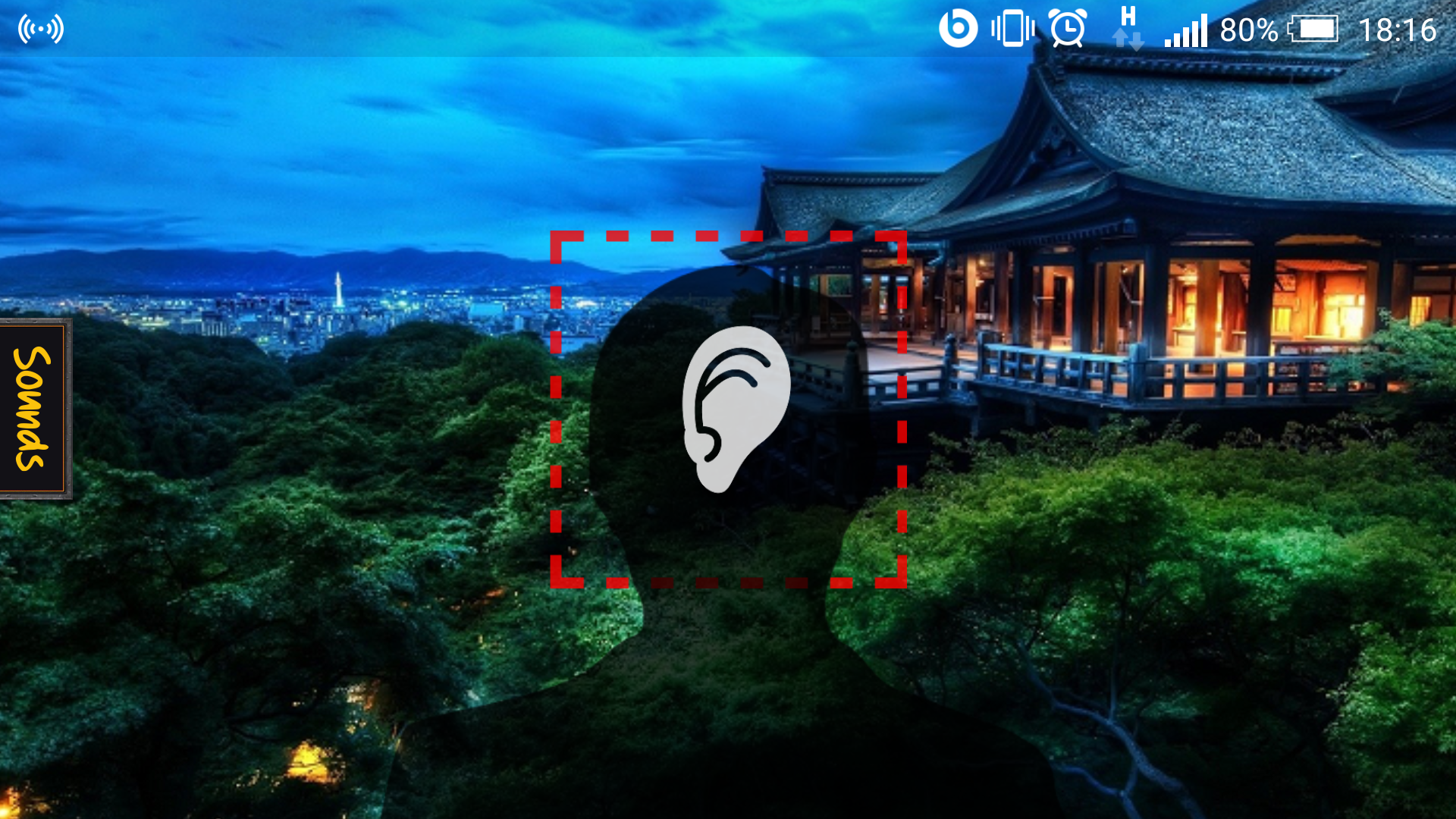 The application simulates the sound around the user based on each sounds pin on the screen. If a pin is in the middle, the sound is general.