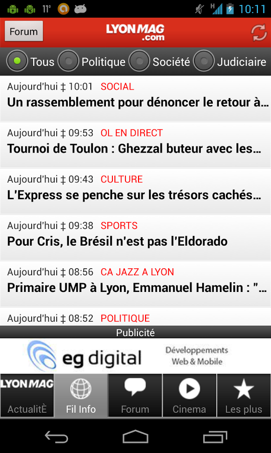 Lyon Mag is a news application that, in addition to displaying the latest information from Lyon, also allows users to interact with each other by posting comments, and view the latest release in movie theaters.