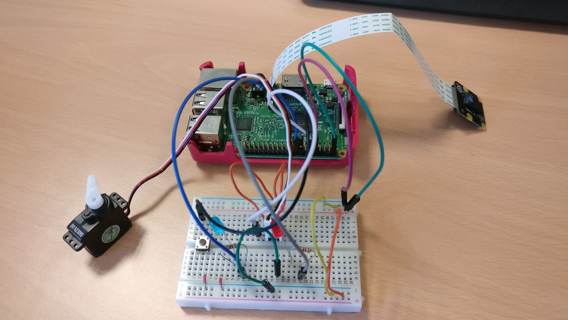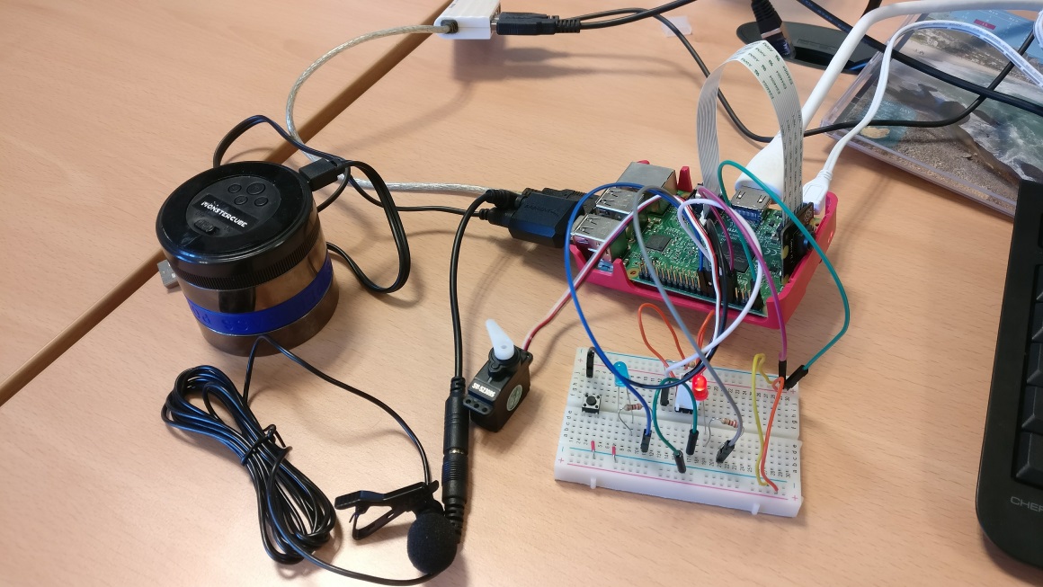 The device is composed of a Raspberry Pi 3, a Raspberry camera, a speaker, a microphone, a servo motor and both an Android and Android Wear 2 application.