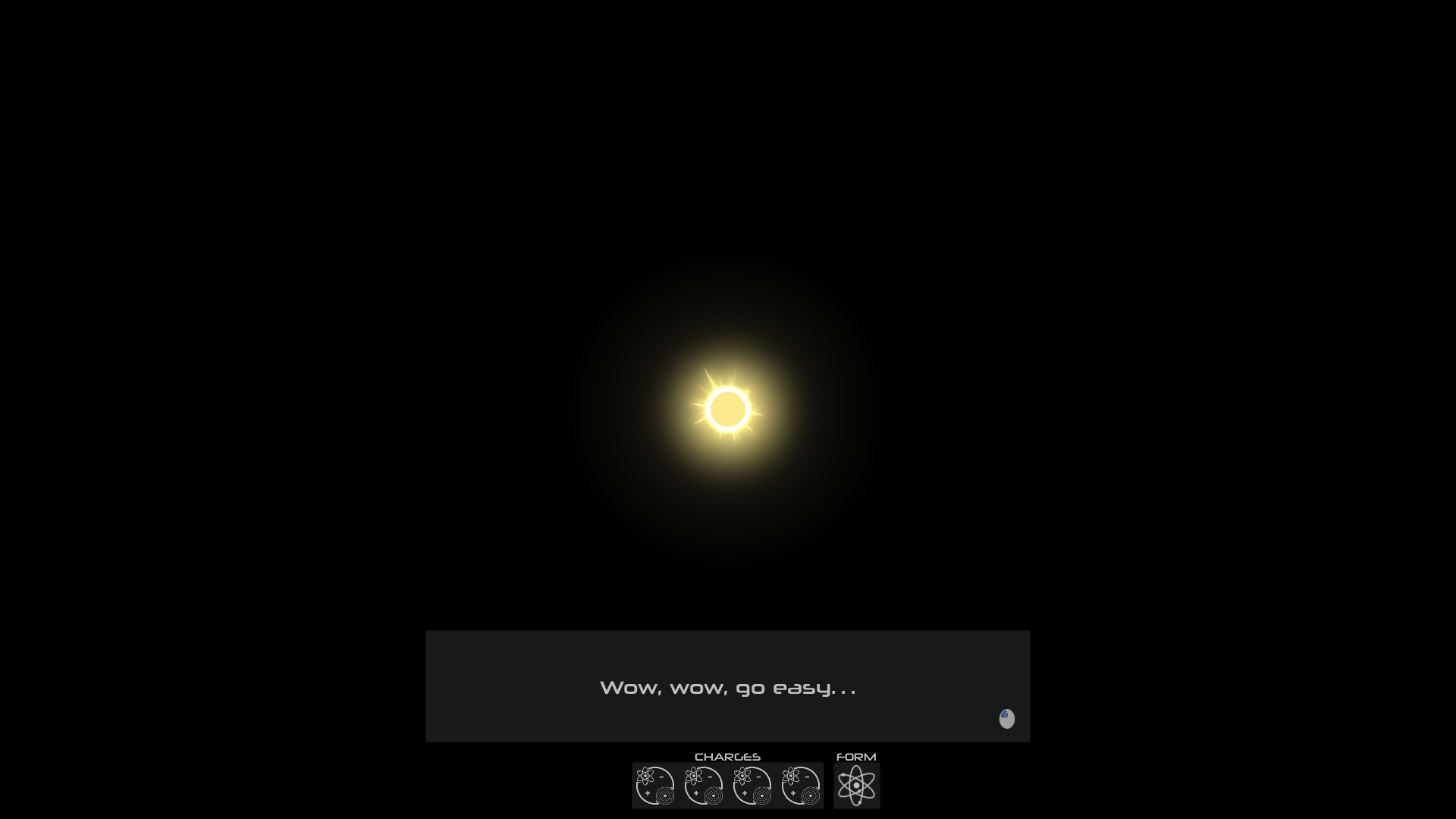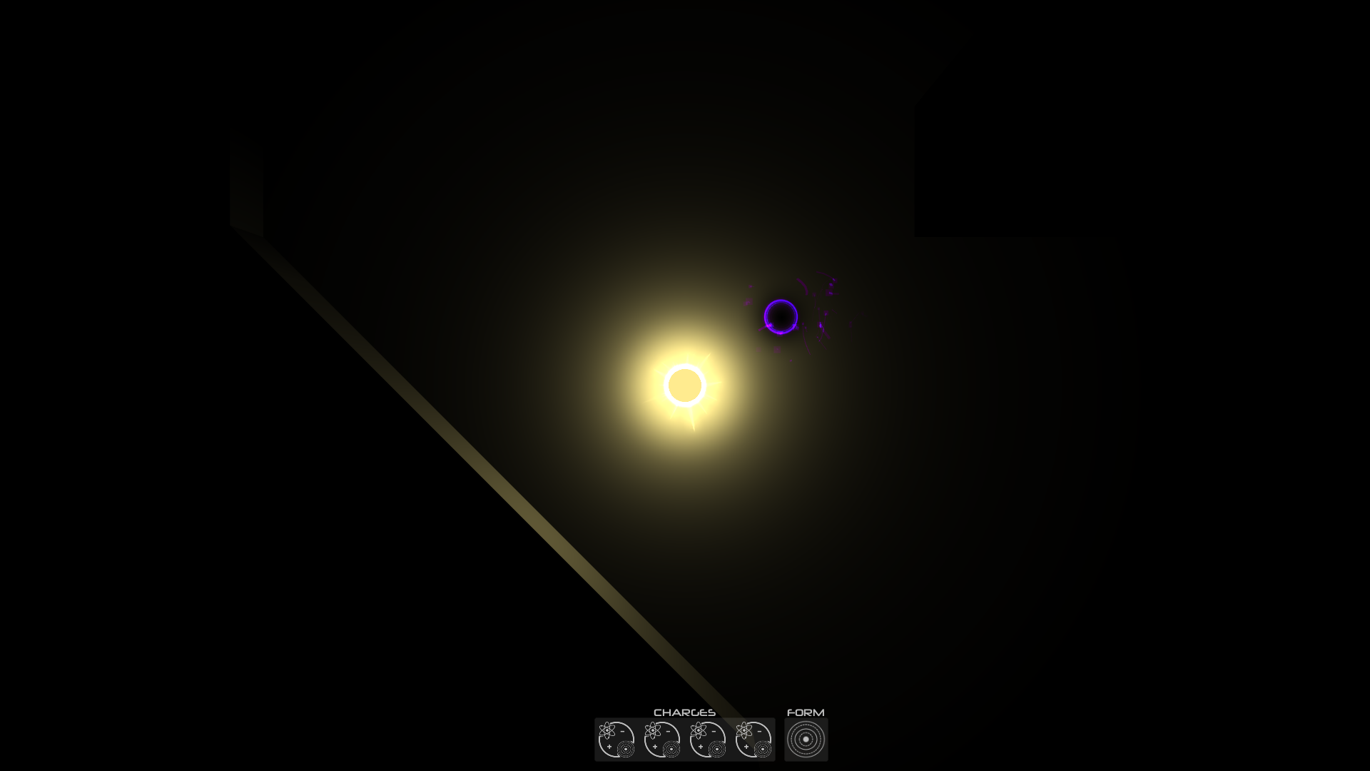 Light being both particle and wave, the player will have to switch between those two form to lead the light to the end of each level. As a wave you can see your surrounding, while as a particle you can move in straight lines. The game have 8 differents level, with multiple game mechanics and enemies.